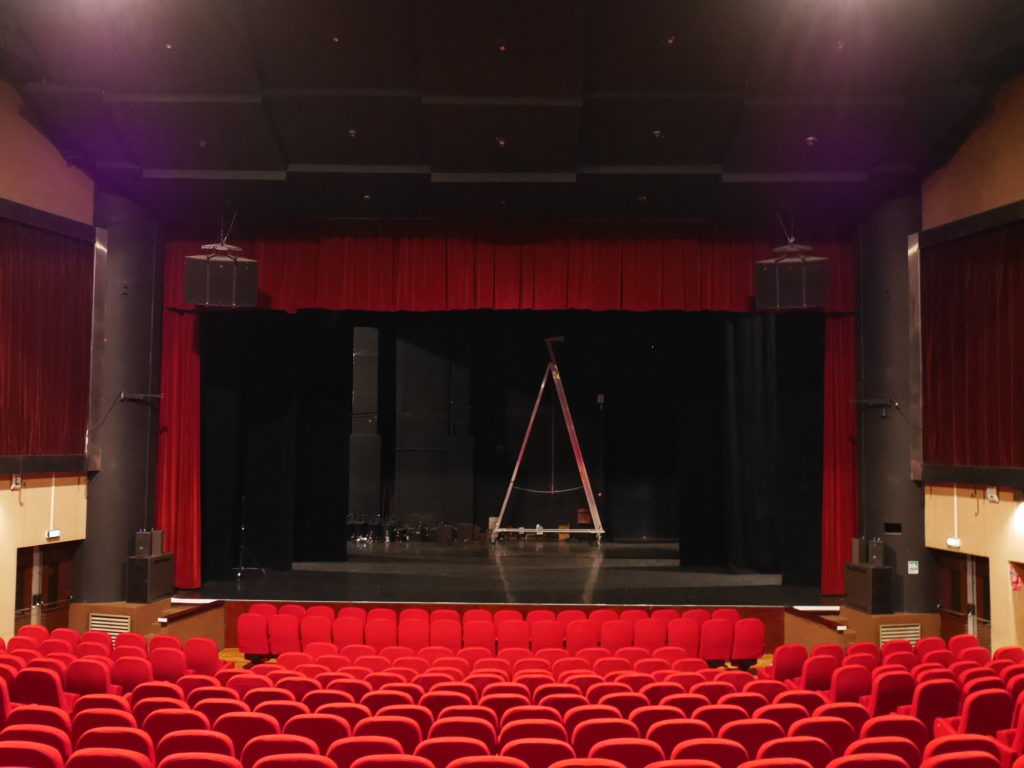 Régie : Espace réservé en salle (18,50m du bord de scène); Régie cabine (26m du bord de scène) utilisée pour poursuite