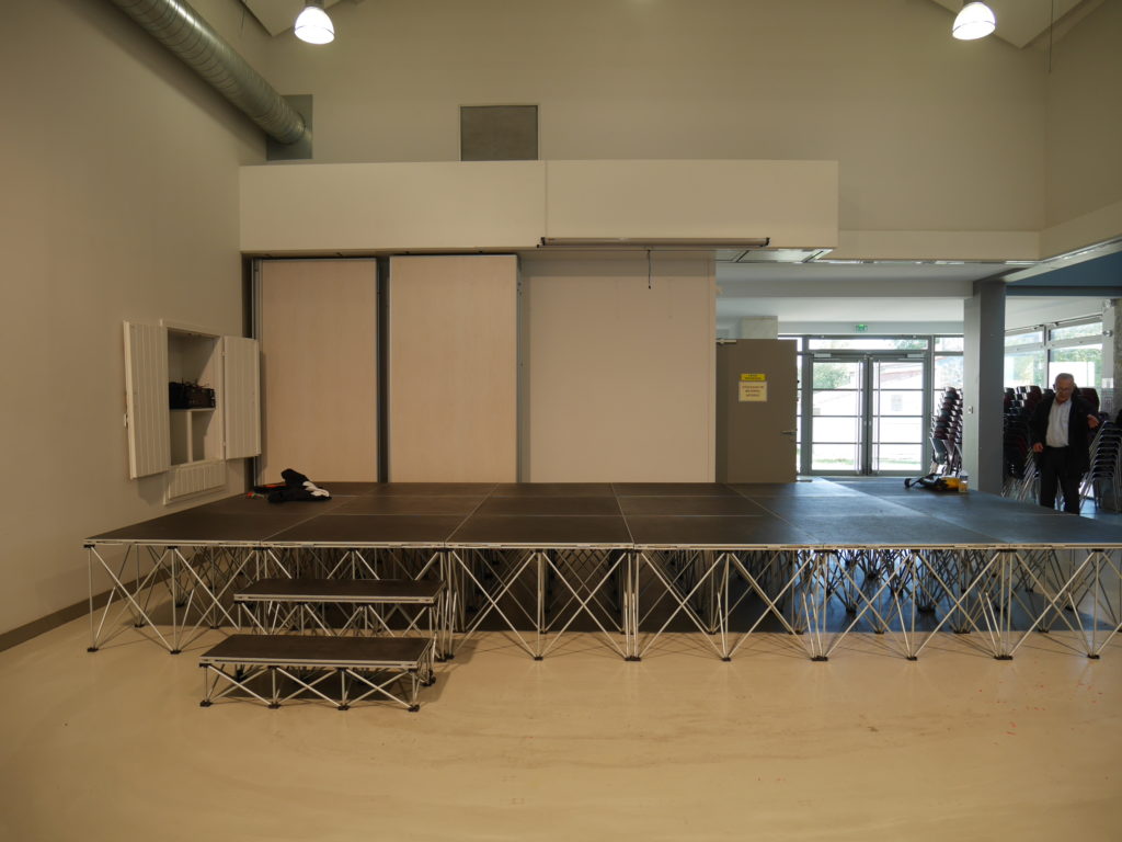Espace scénique de 7,1m x 7,7m avec hauteur utile de 4,40m sans les praticables