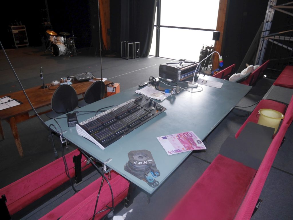 Courant faible : Liaison audio analogique : patch multipaire lointain plateau / salle pour emplacement régie; Liaison DMX : local gradateurs / salle pour emplacement régie