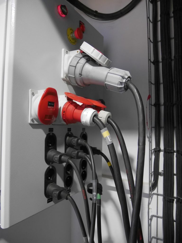 Courant faible : Réseaux Ethernet, DMX, vidéo (analogique et numérique). Connectiques en salle (à cour et fond) et au niveau des porteuses.