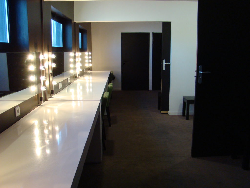 Loges : 2 loges équipées + 1 salle de maquillage à l'étage - Possibilité de faire une grande loge collective en ouvrant les cloisons - 1 loge rapide au RDC