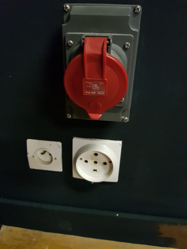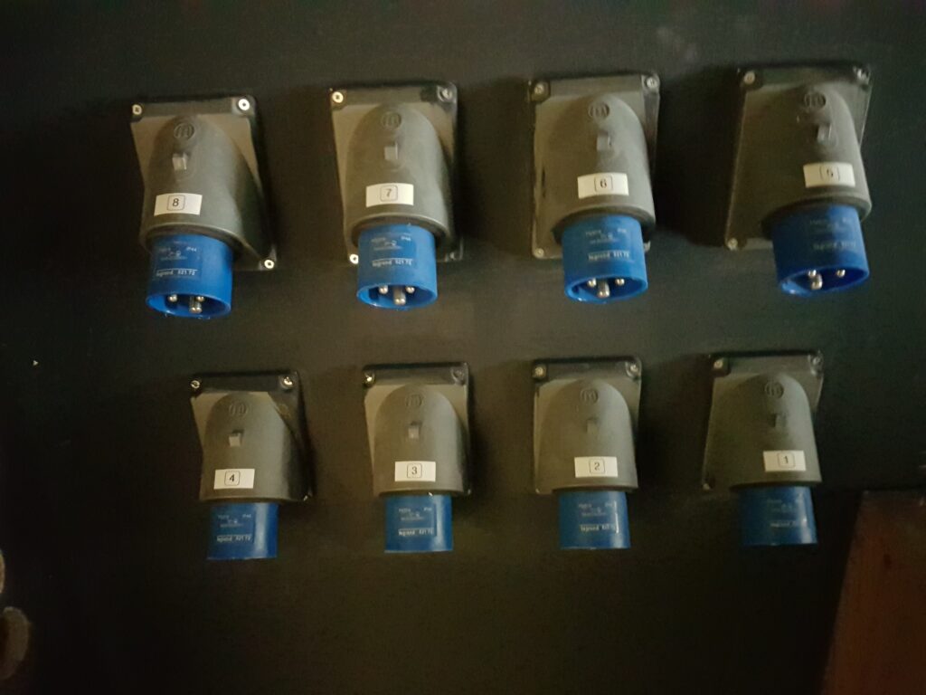 Courant fort : 1 prise P17 32 A Tétra, 8 prises P17 32 A mono, 1 prise 32 A plexo