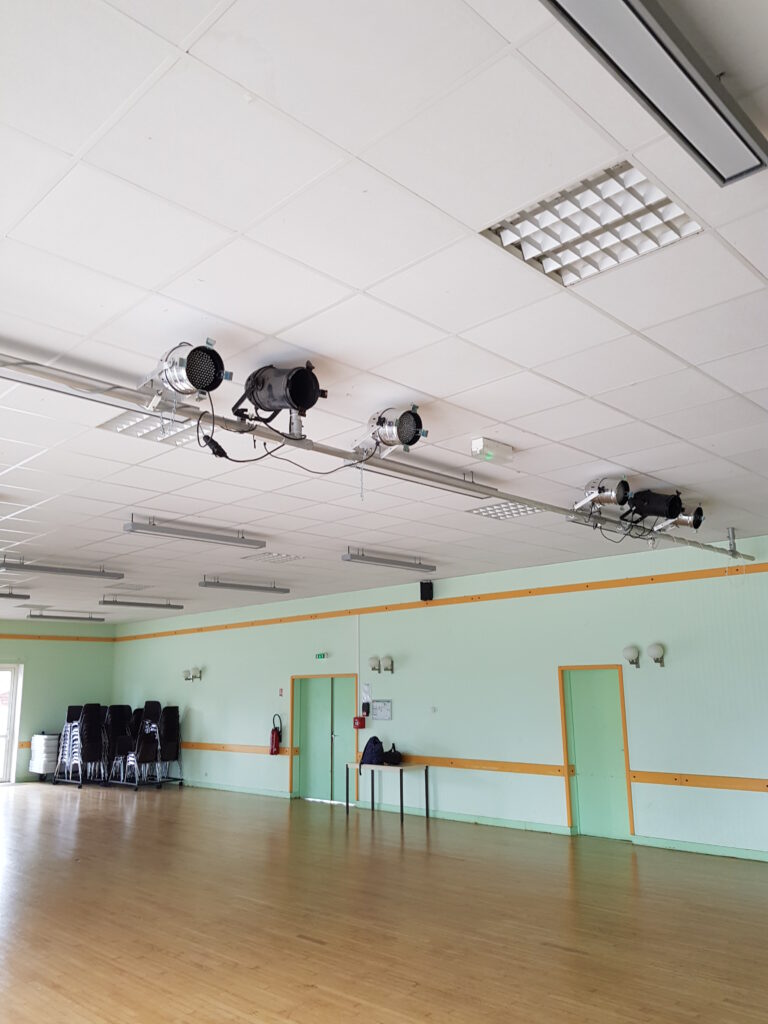 Salle : 1 porteuse fixe à 5 m du cadre de scène