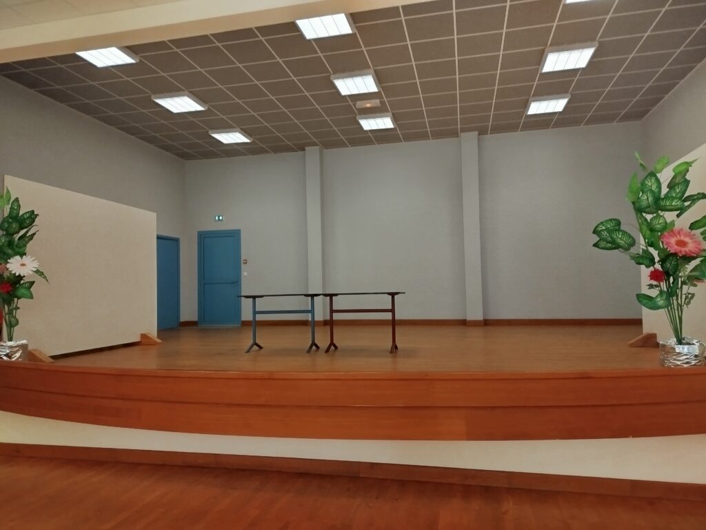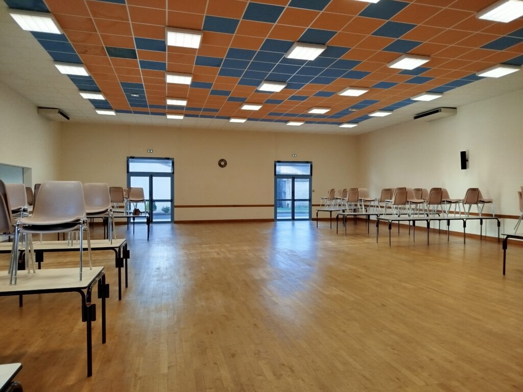 Lieux accessibles : hall d'entrée, salle et sanitaire