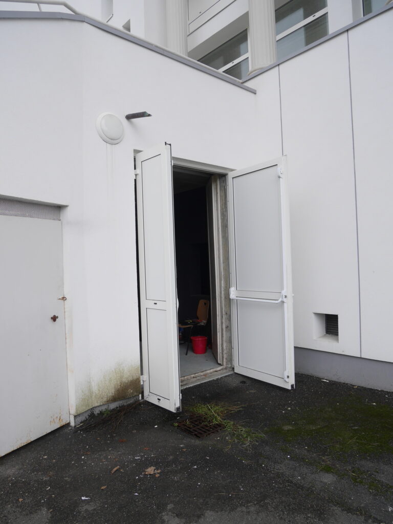 Commentaires : Pictogrammes sur les portes et bande colorée et rugueuse au pied des escaliers