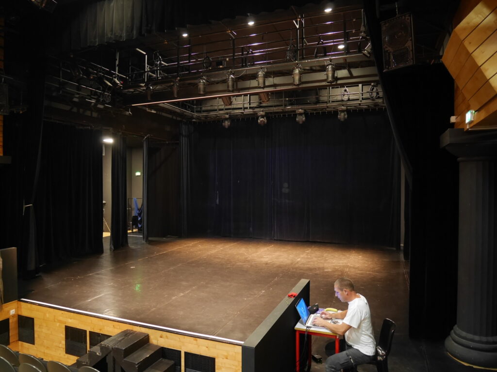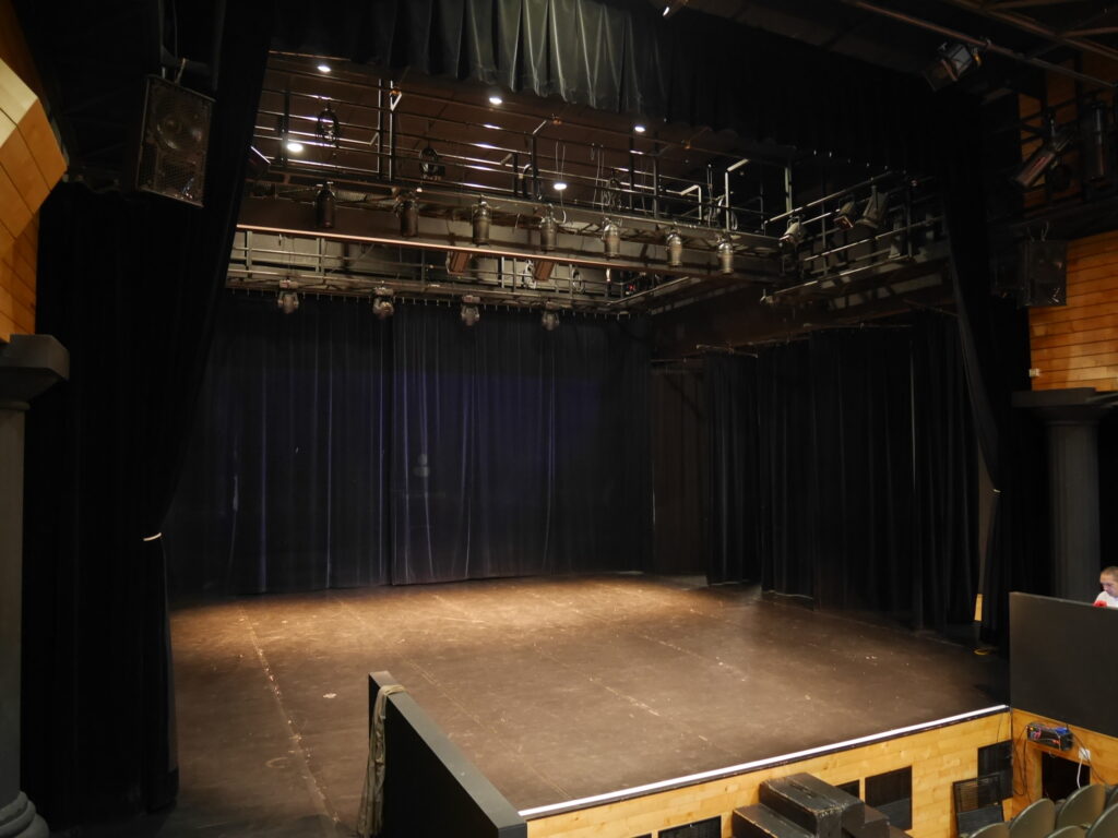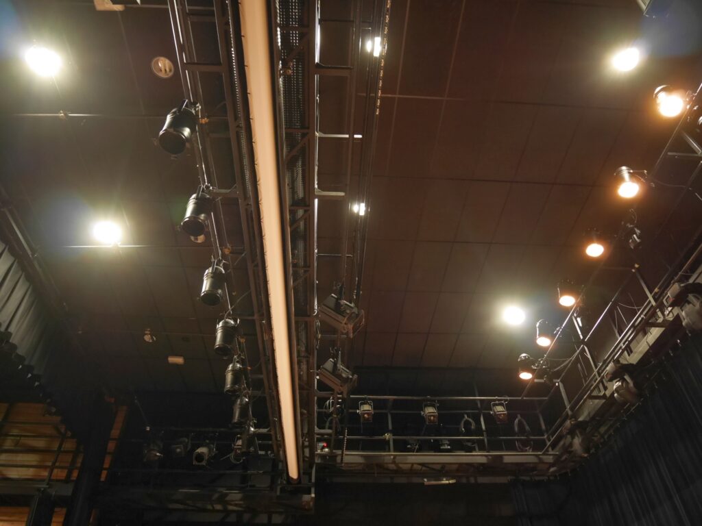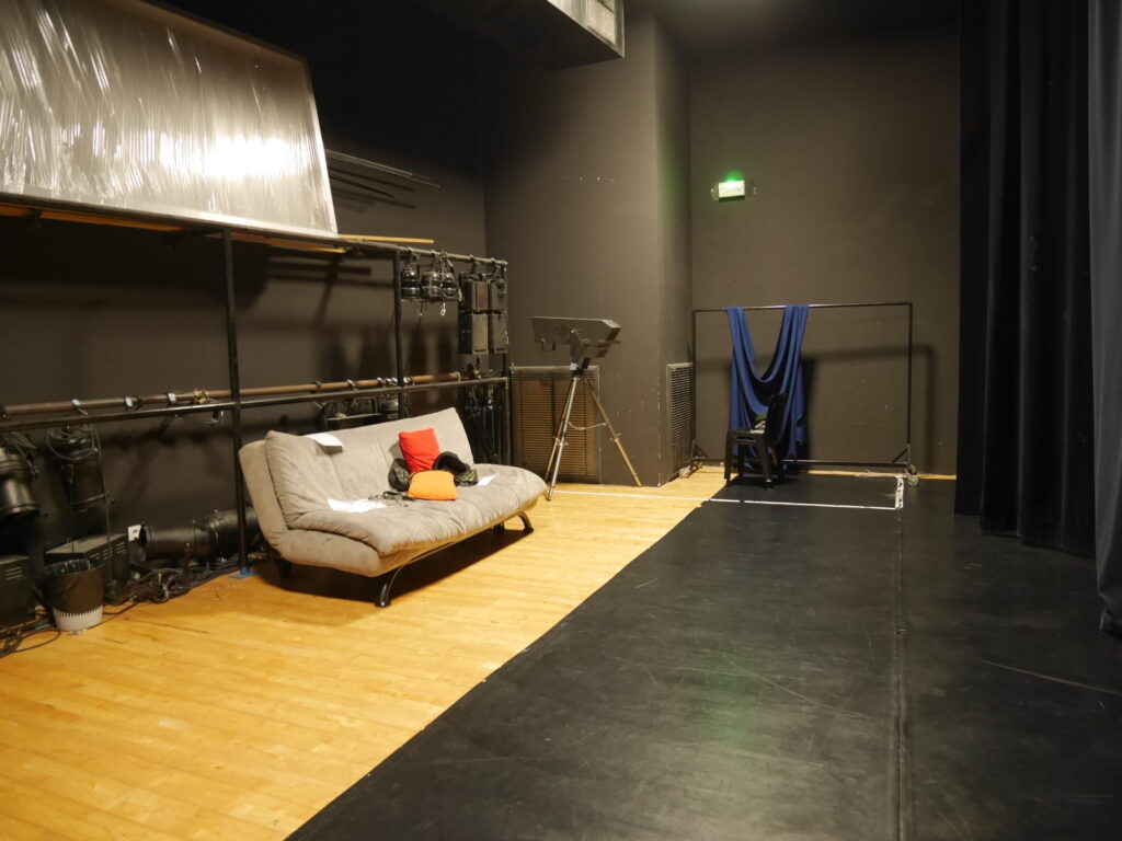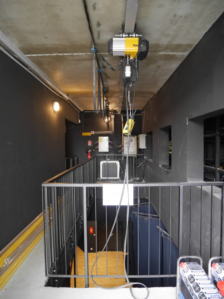 Le déchargement des décors se fait au rez de chaussée à cour puis par un palan (800 kg) jusqu'à la scène Largeur accès décor : 1.35 m