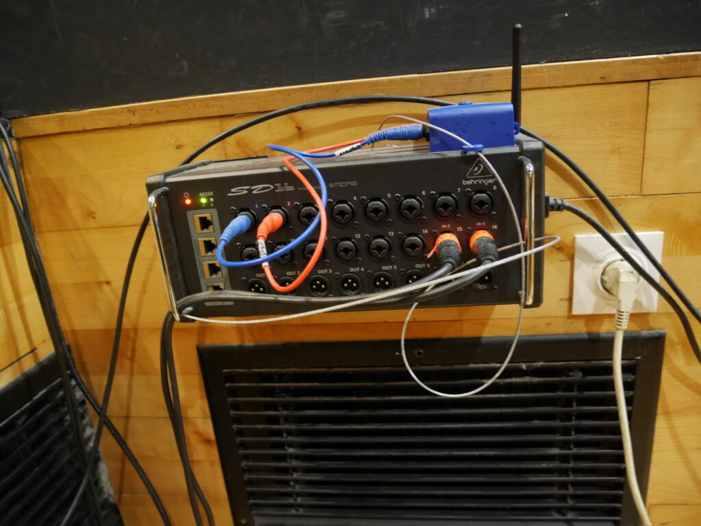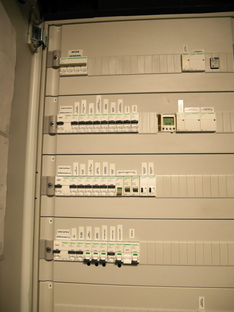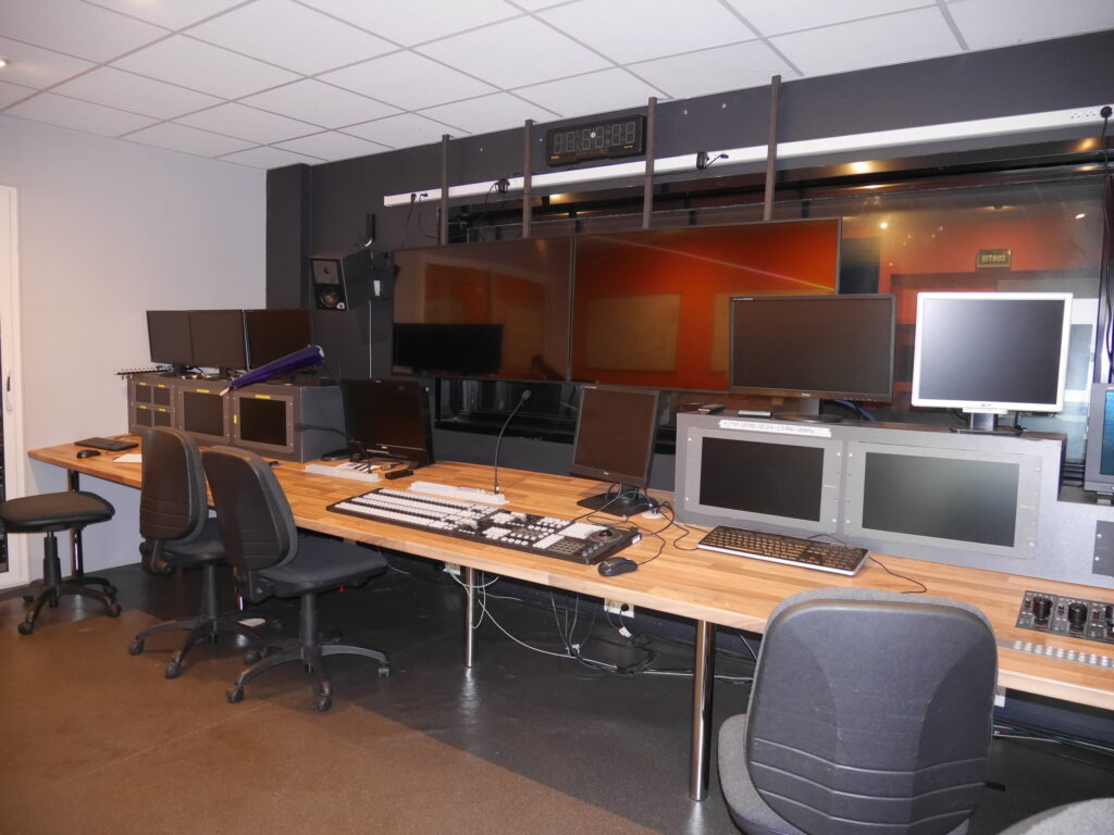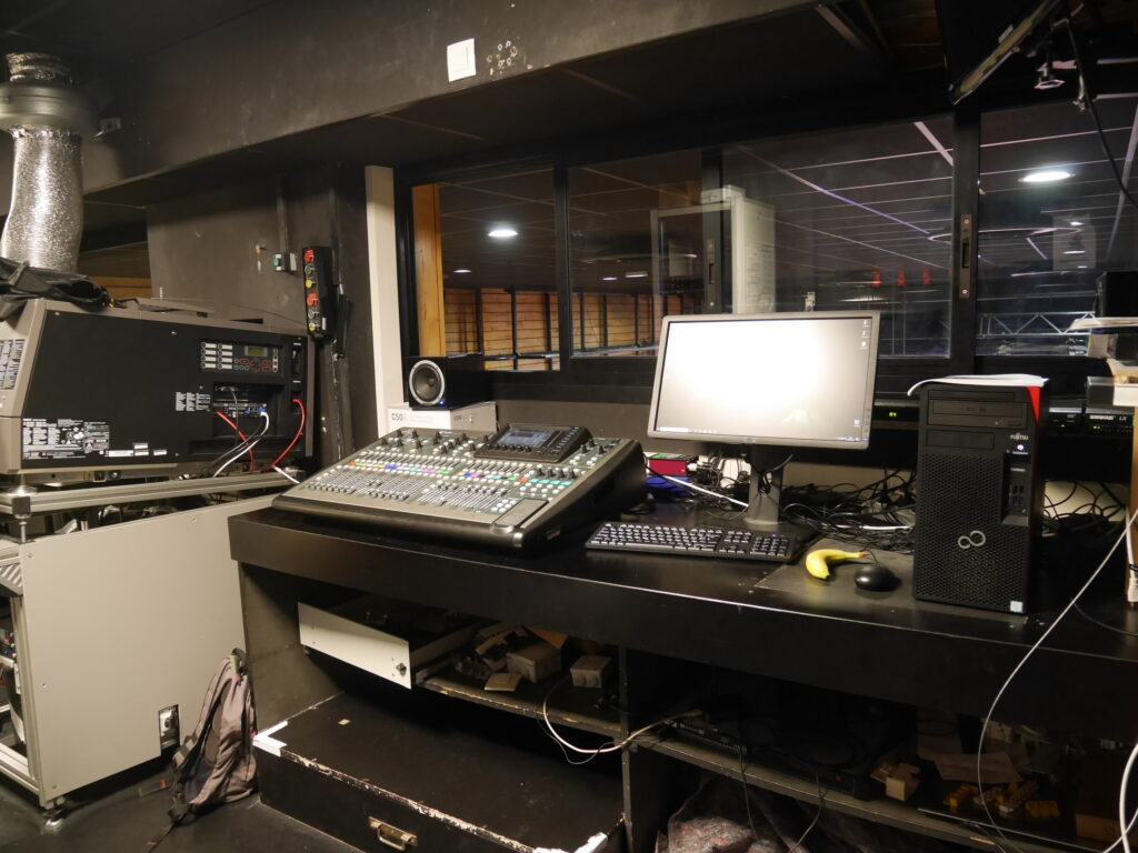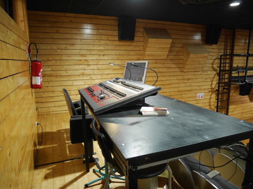 Courant faible : 2 réseaux DMX (régie-grada / régie-gril). Réseau audio numérique RJ45 (régie-fosse). Liaison vidéo depuis régie ou depuis plateau