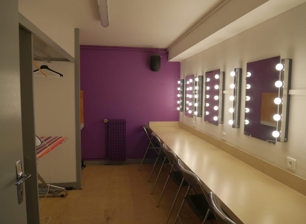 Loges : 3 loges équipées de miroirs et lavabos. Un sanitaire et 3 douches.