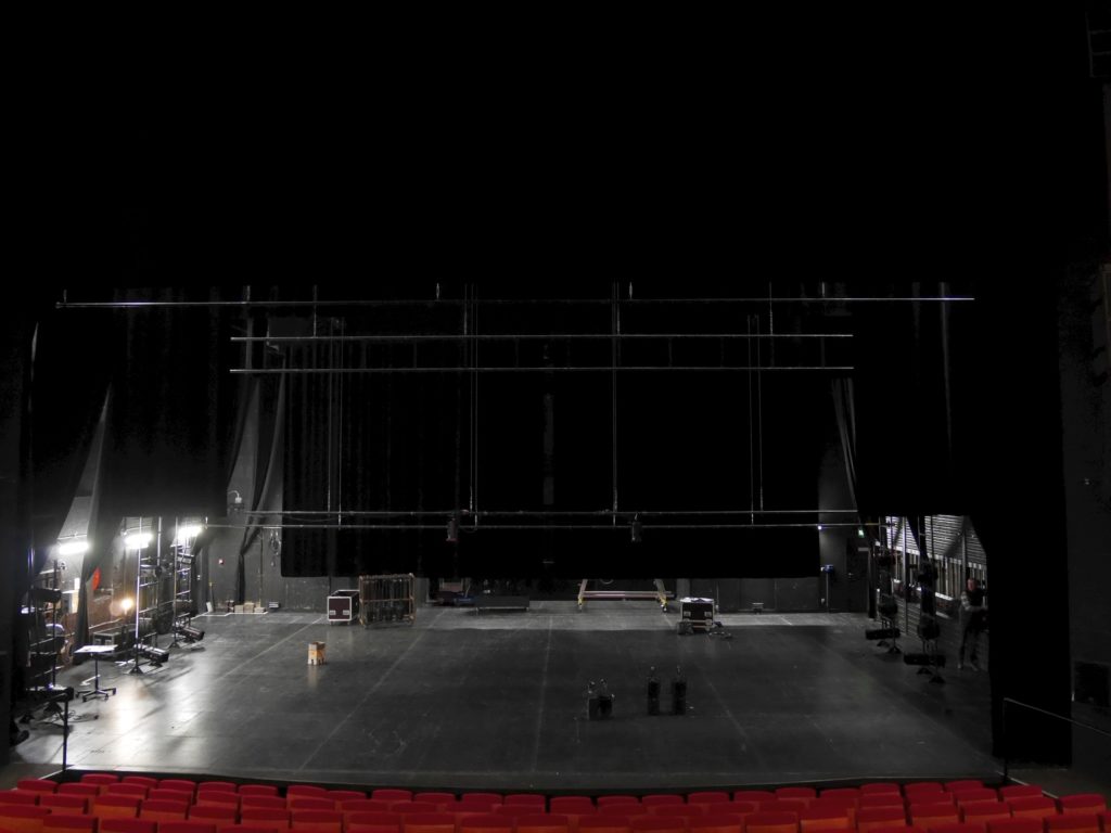 Scène : 32 porteuses contrebalancées et 9 porteuses motorisées; porteuse latérale motorisée à jardin et à cour